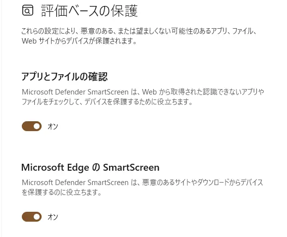 ウイルス対策ソフトを別に入れていない場合でも、この機能が有効であれば、基本的な防御は行われます。